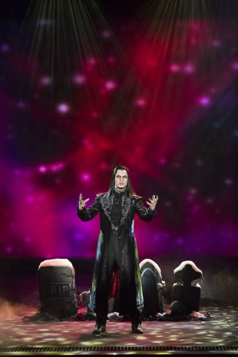Sami Paasilan ensemblevampyyrin olleen tanssiaisissa varsin uhmakas Krolockia kohtaan ja kaikesta päätellen vähintään vallankumousaikeissa. Mahdin esittely taisi siis olla paikallaan, että alempiarvoiset vampyyrit tajuavat pysyä ruodussa. Jälkeenpäin loimme kaverini kanssa kaksikin eri teoriaa siitä, kuinka tämä asusta ja pulisongeista päätellen unkarilainen ensemblevampyyri on vuoden